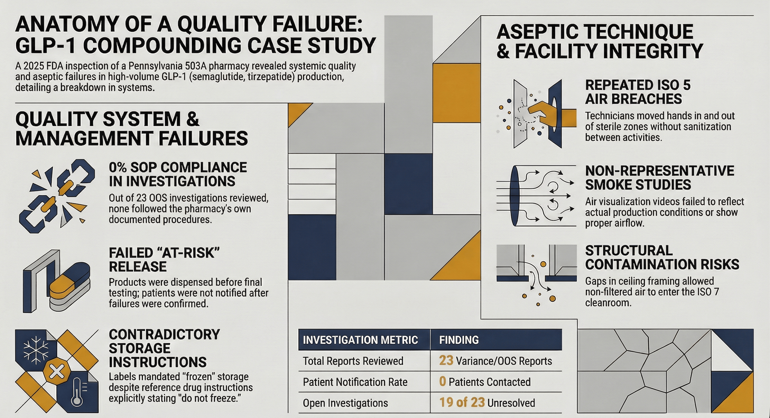 This week: a June 2025 FDA inspection of a Pennsylvania 503A compounding GLP-1 injectables. The pharmacy released product before test results came back. The results failed. Patients weren't notified.