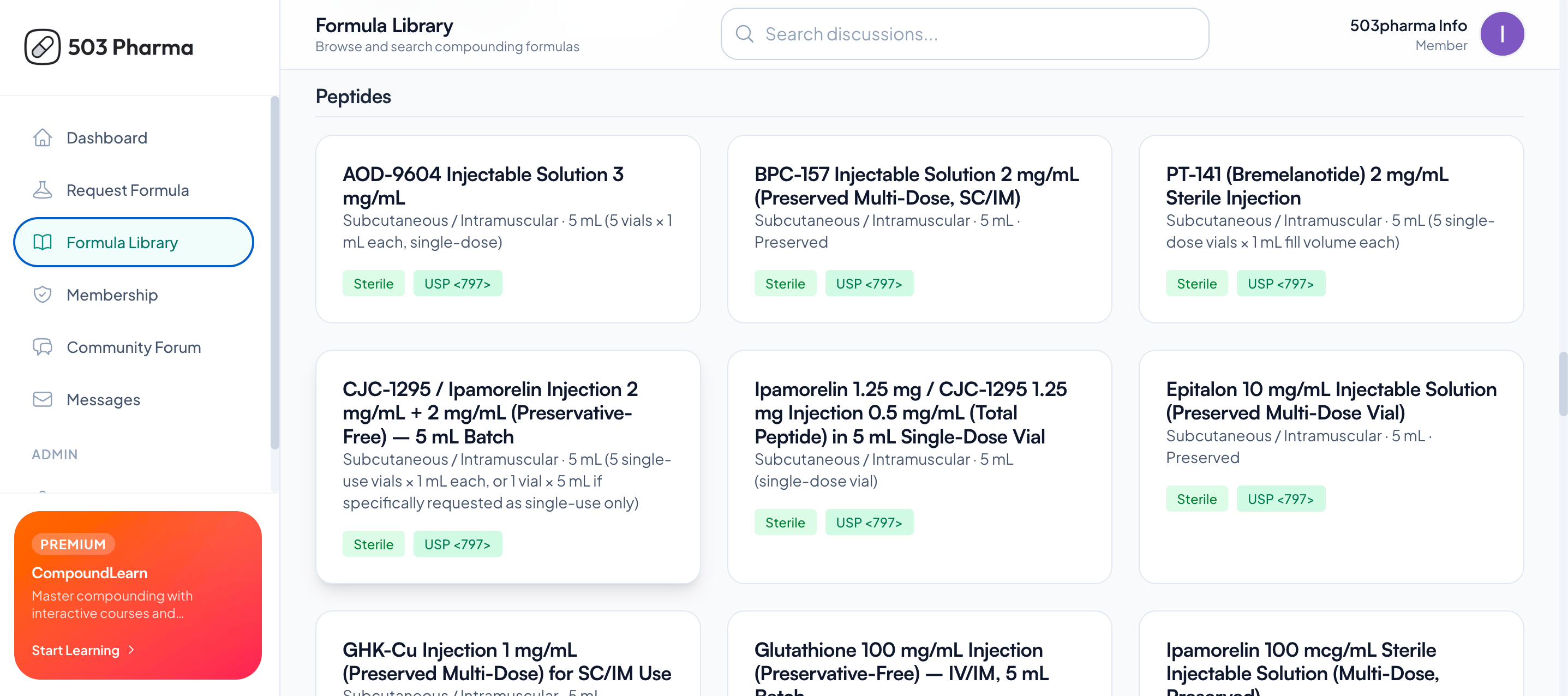 We just launched a formula library for compounding pharmacies — 90+ ready-to-use formulations, now live in the members area at app.503pharma.com.